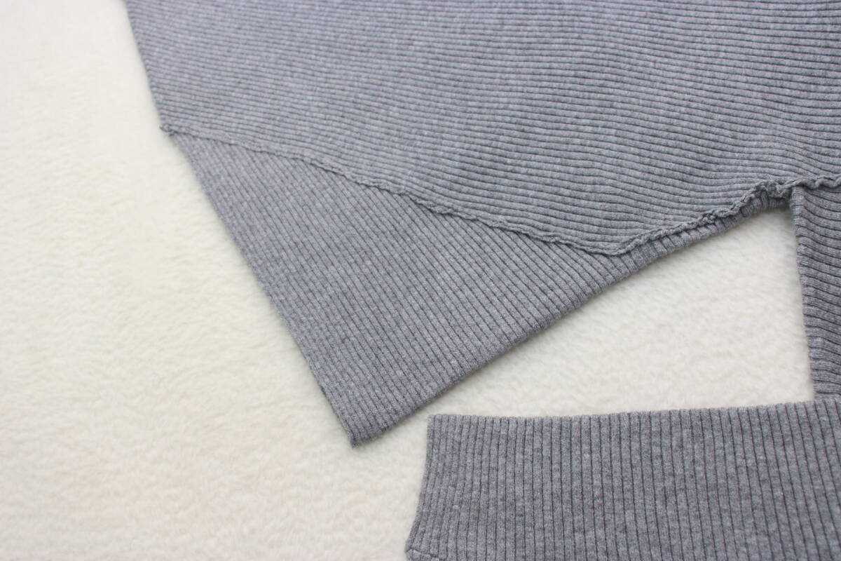 4239 新品タグ付き アシンメトリーリブニットプルオーバー グレーM