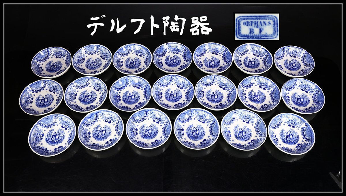 【吉】CN478 十八世紀 オランダ 【デルフト陶器】 染付 プレート 20点 径14㎝/箱付 美品n!