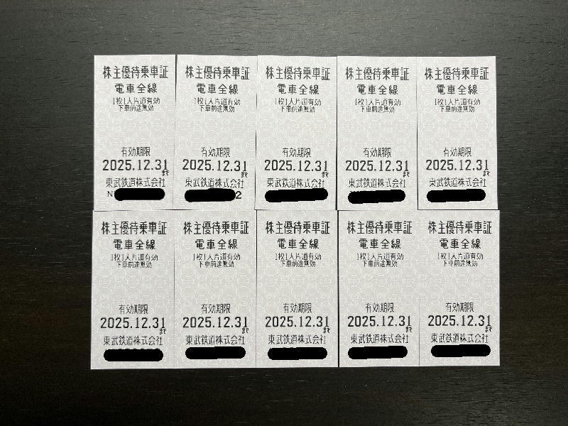 Product name: 東武鉄道 株主優待乗車証 10枚  有効期限2025.12.31