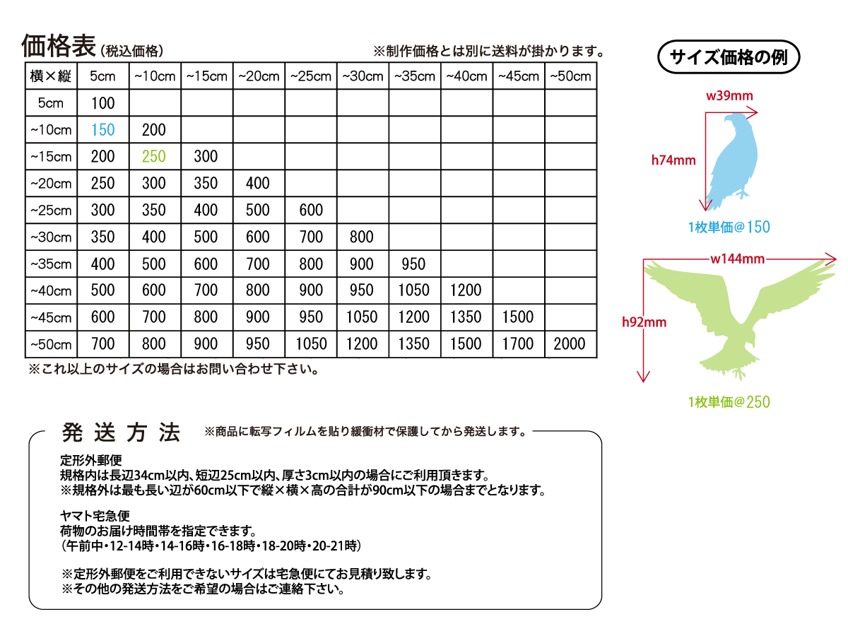 サイズ価格表もご確認頂けるようお願いします。