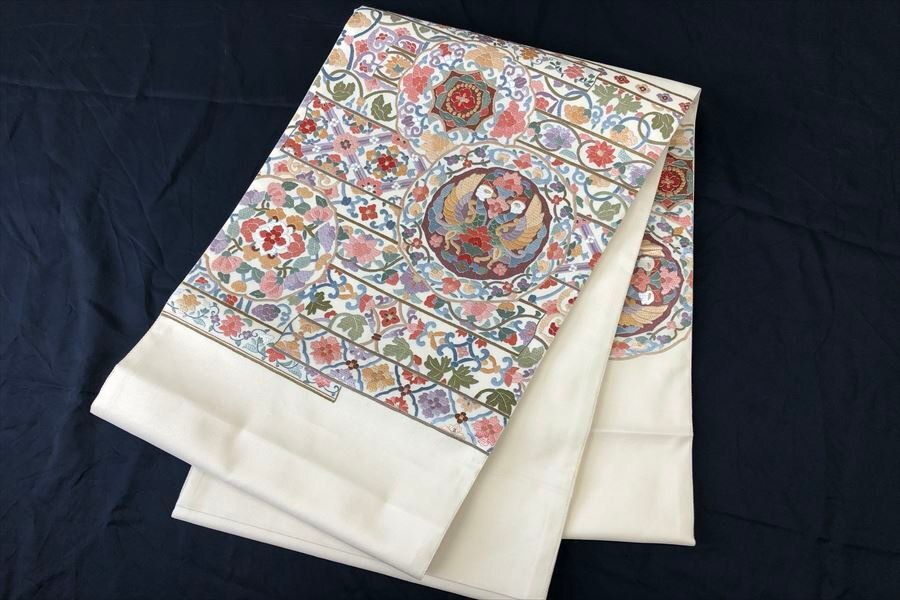 Product name: 【99】中古着物 帯 袋帯 まとめ売り3点 紗刺し刺繍 タイコ柄 天井文様 正倉院文様 蜀江文様 中国刺繍 相良刺繍 刺繍 和ものや傳 B1021