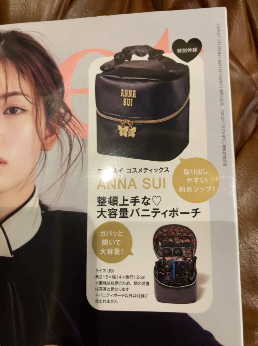 送料無料!sweet スウィート 2025年 11月号 (付録) ANNA SUI COSMETICS ななめファスナーがポイント! 整頓上手な大容量バニティポーチ