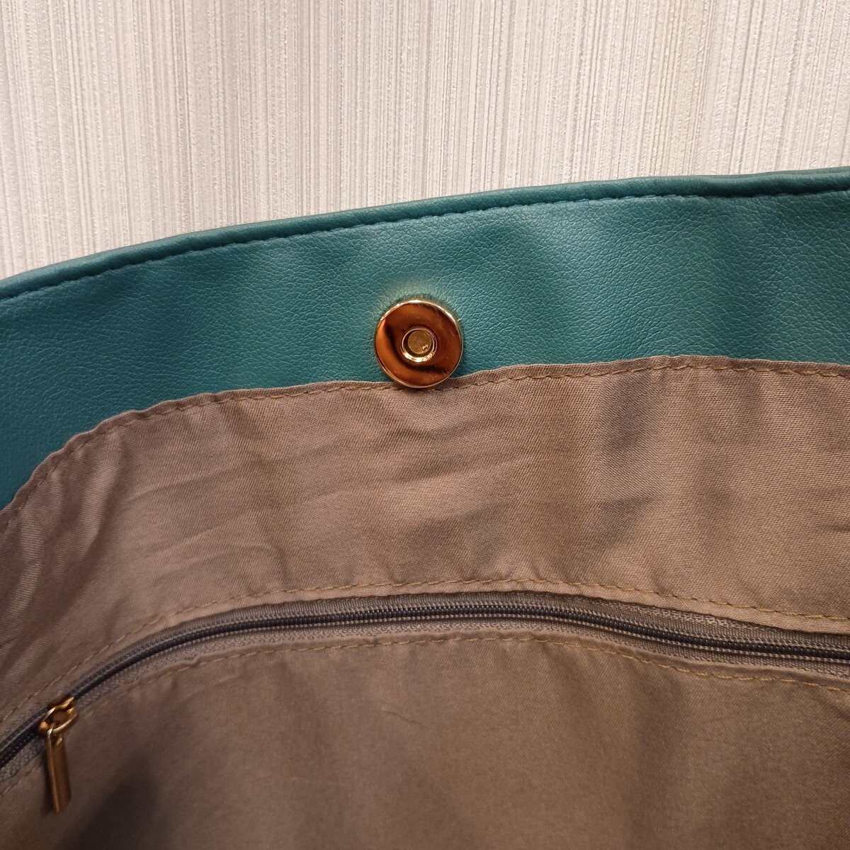 新品 くったり合皮 スクエアトート ブルーグリーン1004