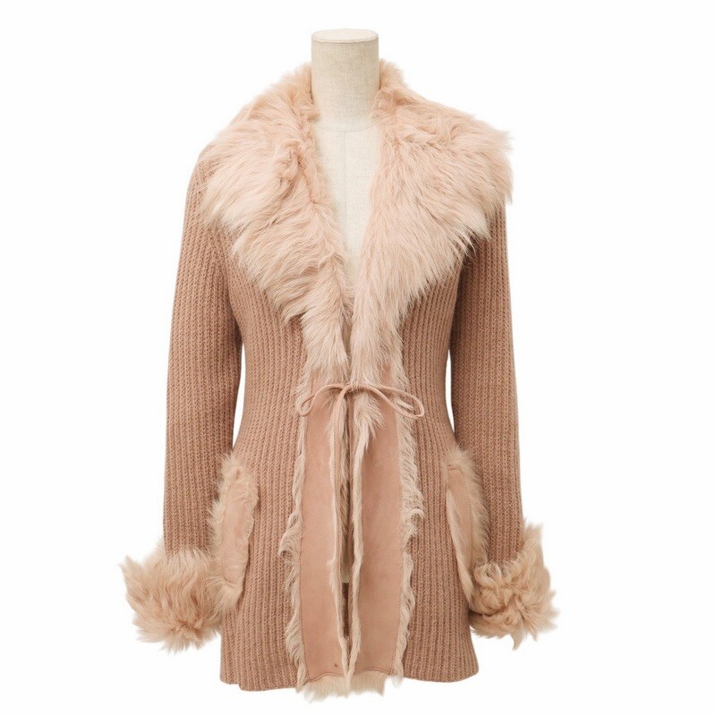 Product name: GR5284●エポカ/EPOCA*ムートン襟付き ニット ジャケットコート*ウール アクリル アルパカ*羊革*レディース サイズ40*ピンク系