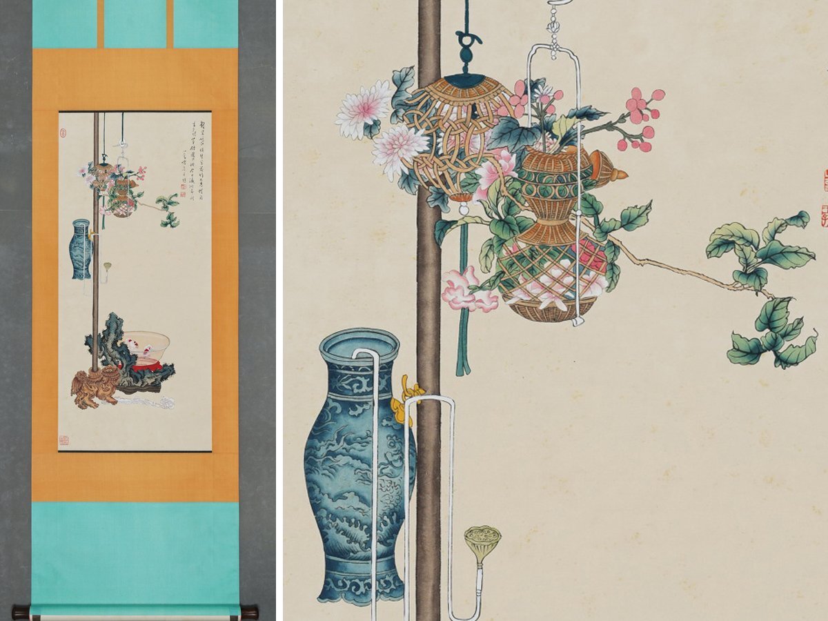Product name: 【安】中国近時代画家「溥儒書」紙本「花籃金魚図」掛軸 中国画 墨寶妙品 中国書道 古美術 338