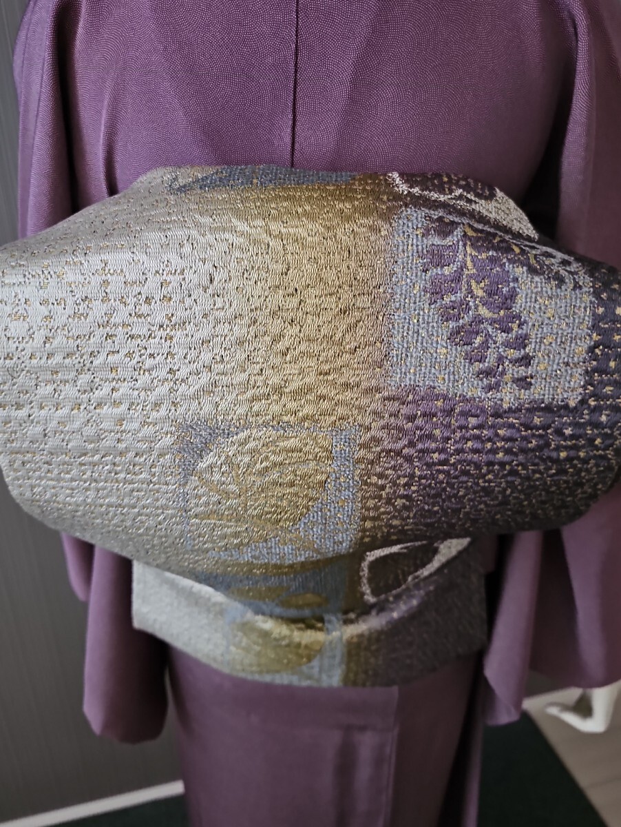 Product name: すずや■232正絹袋帯六通 灰紫×灰白系