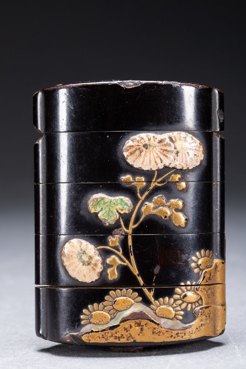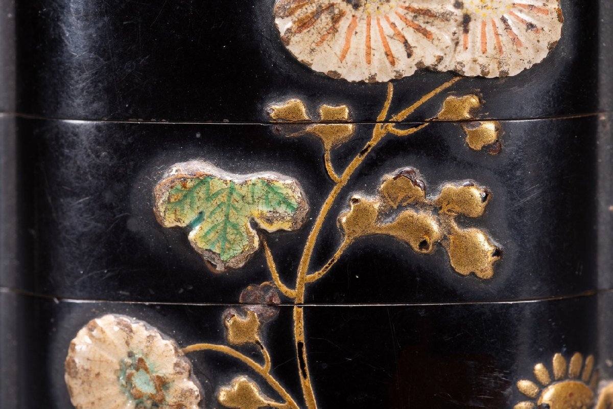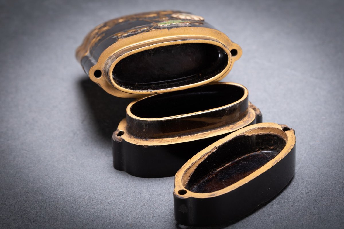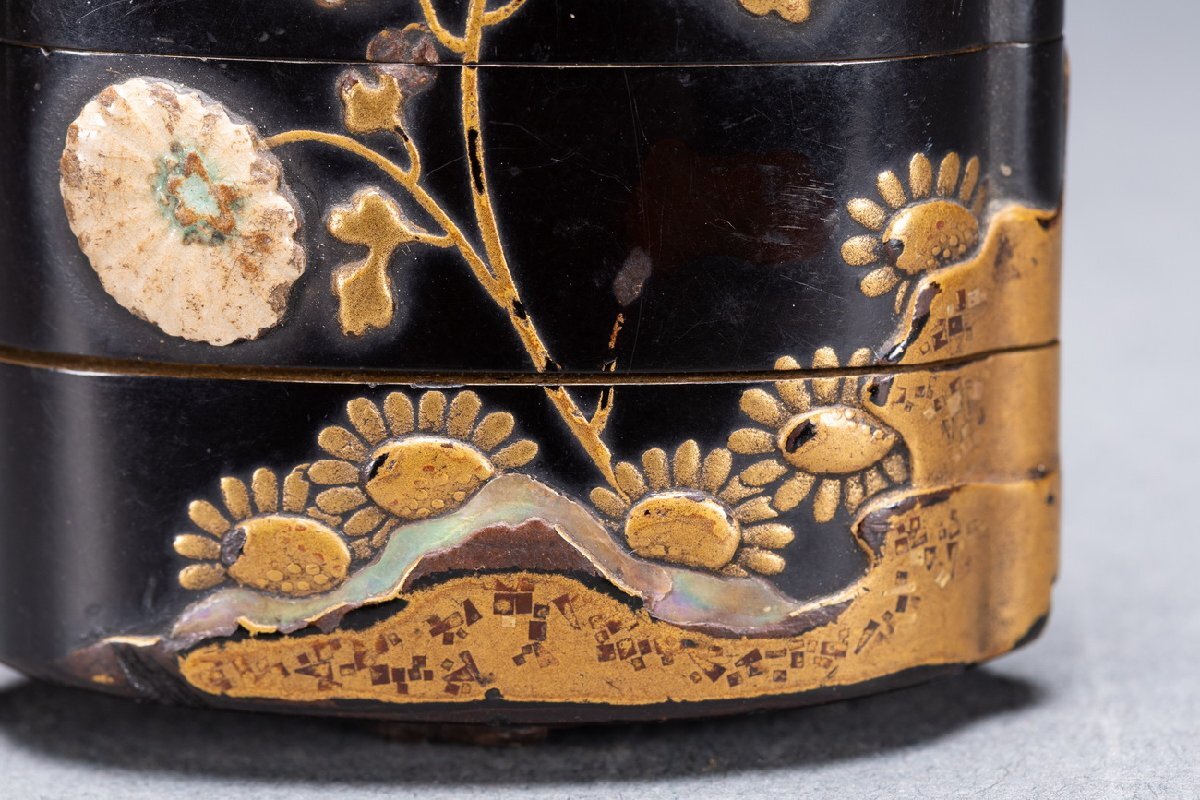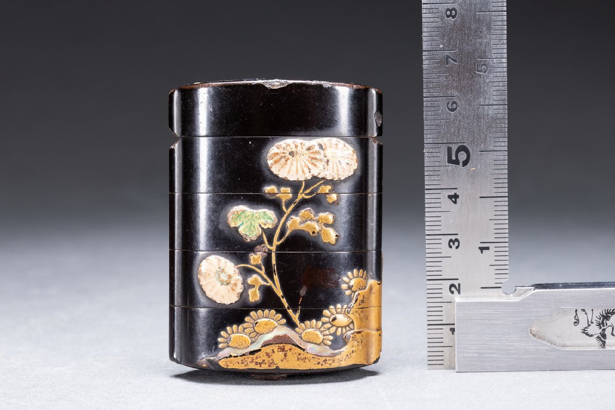 Product name: 【雲錦】某有名オークション購入 江戸~明治時代 漆塗 象嵌花卉紋四段印籠 傷あり 古置物 古擺件 古美術 時代コレクションWK10-43L06