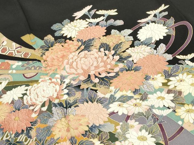 Product name: 平和屋着物▼豪華黒留袖 作家物 駒刺繍 束ね熨斗花文 暈し染め 金彩 正絹 逸品 CAAY8153gh