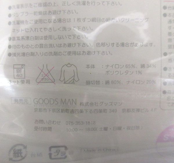 ■素材:本体/ナイロン65% 綿34% ポリウレタン1%