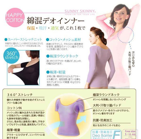 内 容 ■レディース サニースキニー ハッピーコットンデオ 9分袖インナー