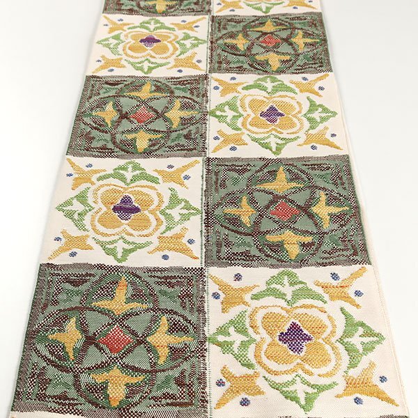 市松状に表現された模様がおしゃれ心をくすぐる帯でございます。