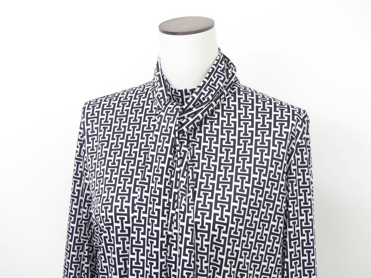 新作 iCB 30th ANNIVERSARYモノグラムプリントスムースボウタイブラウス 4 オフホワイト×ブラック ポリエステル 30周年 '25年AW商品