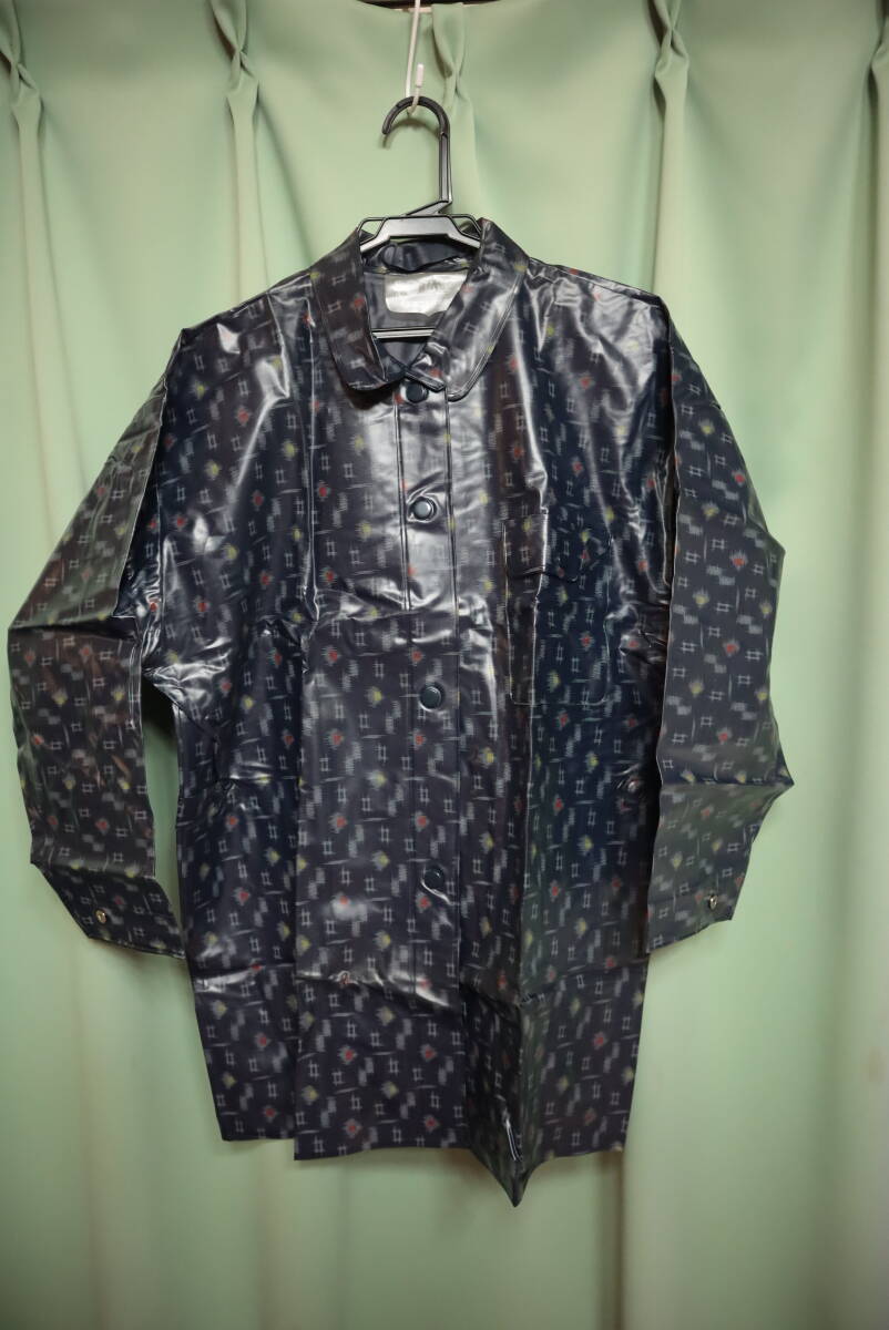 ☆訳あり レトロ 絣柄光沢ビニール雨合羽 レインコート上のみ 1号大☆