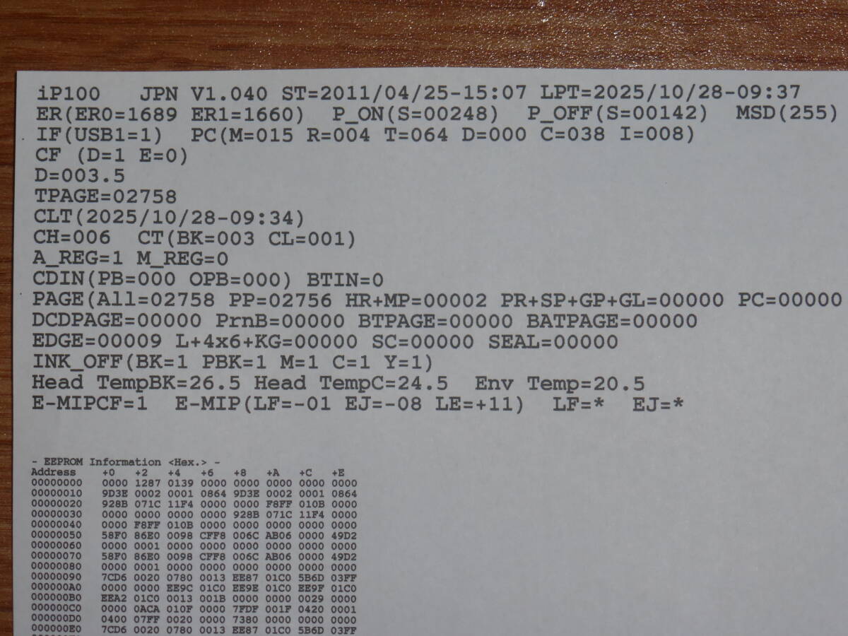 動作プリント正常確認済み、ノズルパターンも正常です。
