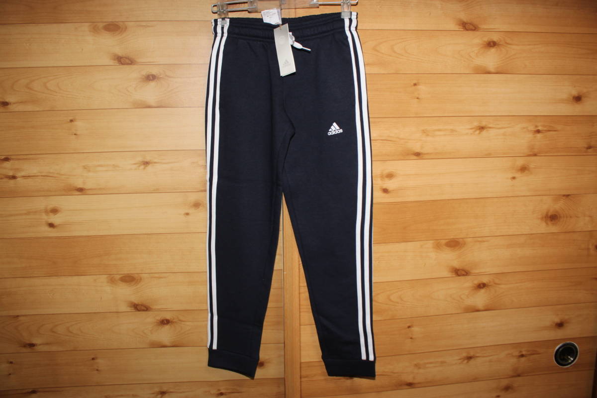 未使用 150㎝ アディダスadidas 紺白 3本線 スウェットジョガーパンツ 送料無料即決 裏起毛厚手 GQ8898