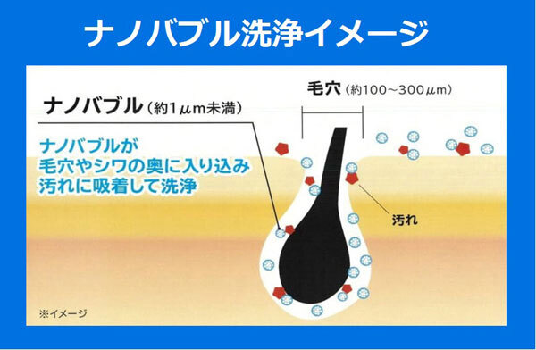 目に見えない極小のナノバブルが毛穴の奥の汚れを浮き上がらせることで、