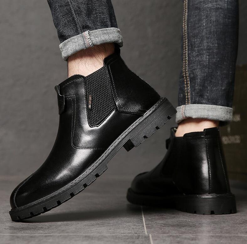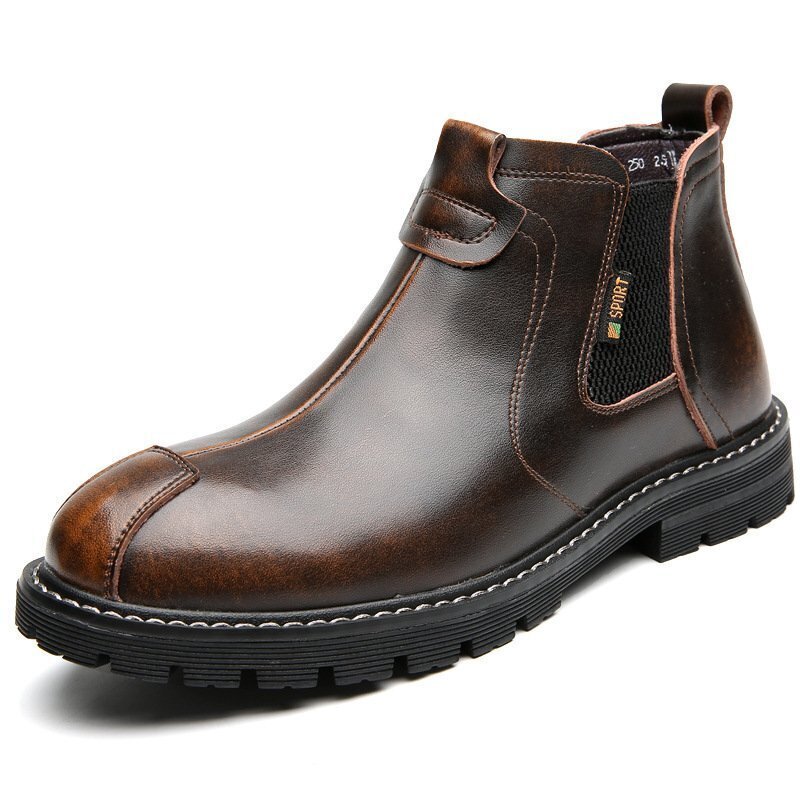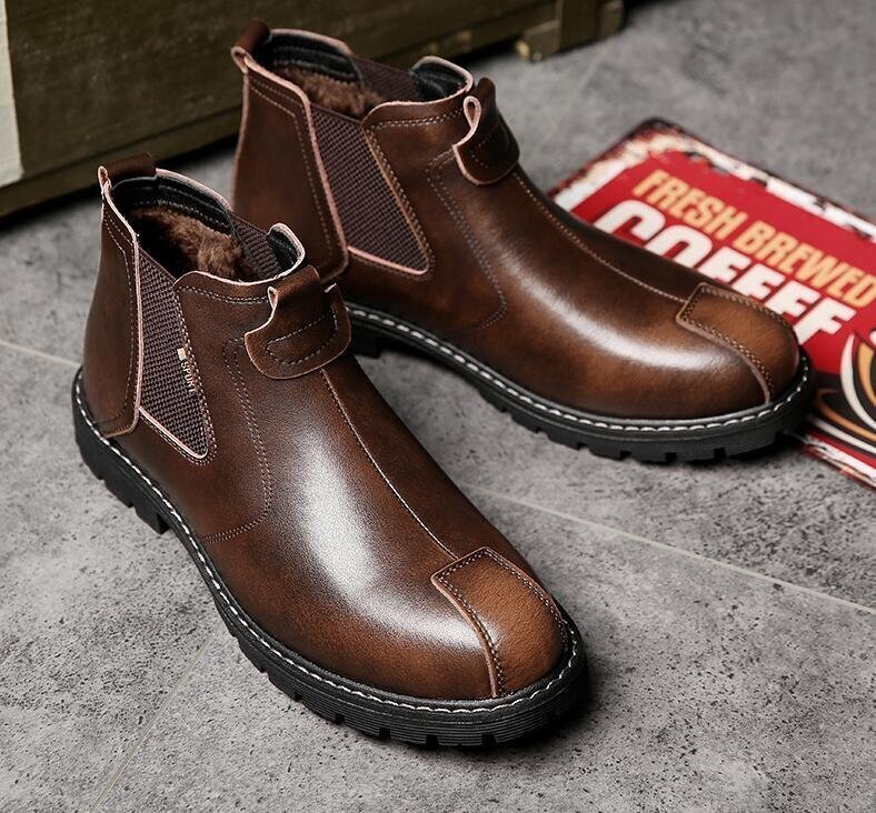 新品!メンズ チェルシーブーツ 牛床革 革靴 シューズ ブーツ アウトドア 裏起毛 ブラウン 24cm~27cm