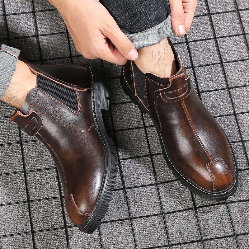 Product name: 新品!メンズ チェルシーブーツ 牛床革 革靴 シューズ ブーツ アウトドア 裏起毛 ブラウン 24cm~27cm