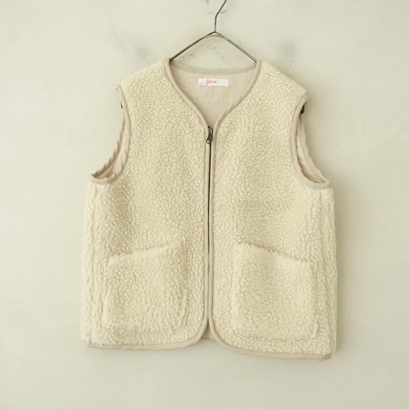 YARRAのジップアップボアベストです。カラーはアイボリーで、ボア素材で仕立てられています。フロントはジッパー開閉で、両サイドにポケット、裏地付きです。定価(メーカー希望小売価格) 15,400円の商品です。