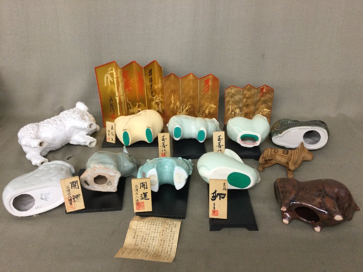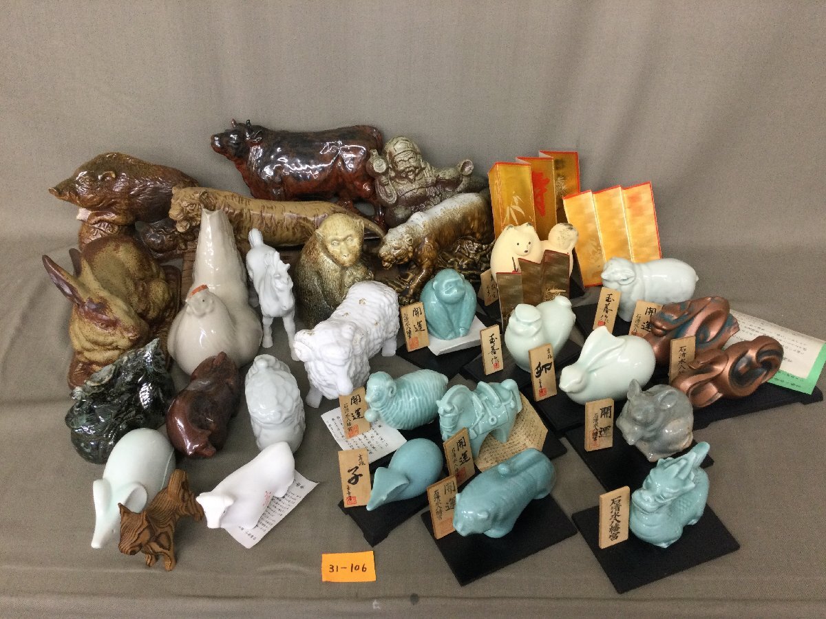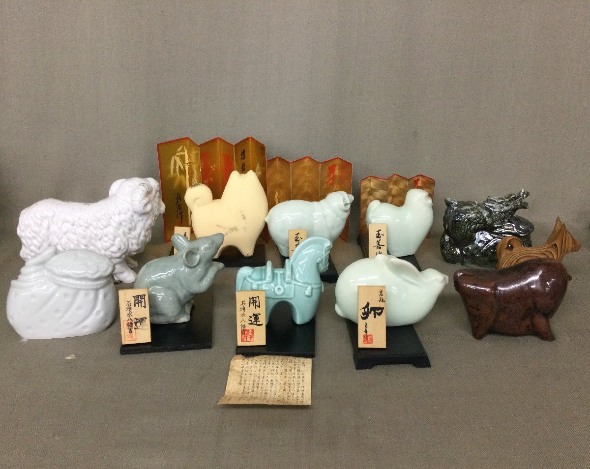 Product name: ★31―106★陶製飾り 干支の置物 大量まとめ 青磁/白磁/信楽など 在銘 木札 詳細不明 開運 古美術 ミニチュア[140]