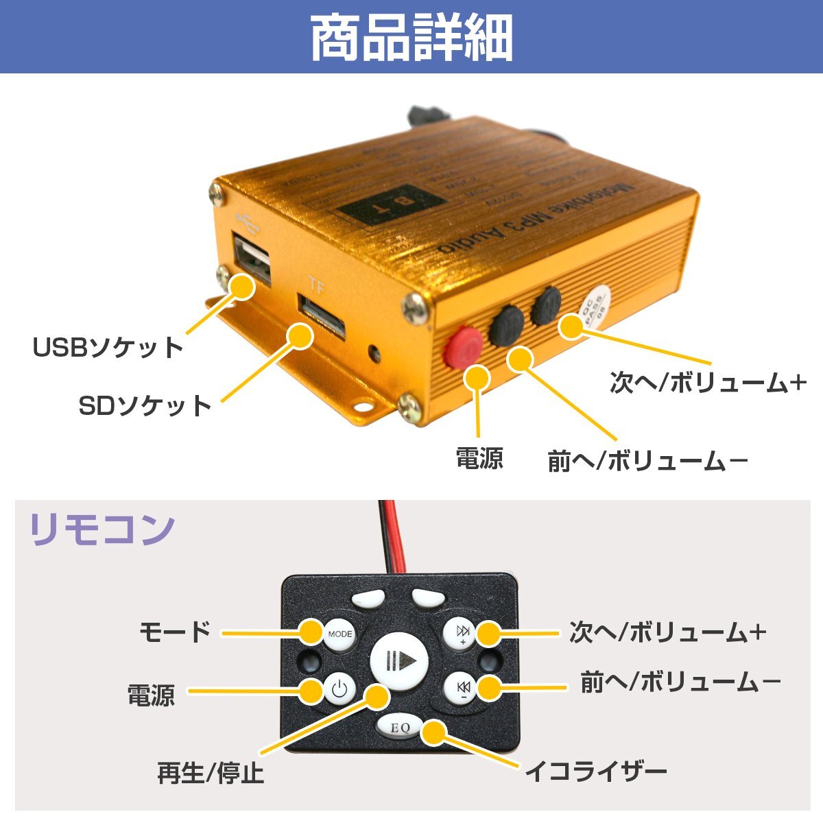 Product name: バイク用 2個セット 12V スピーカー アンプ オーディオ リモコン 88dB/W ブルー 青 防水