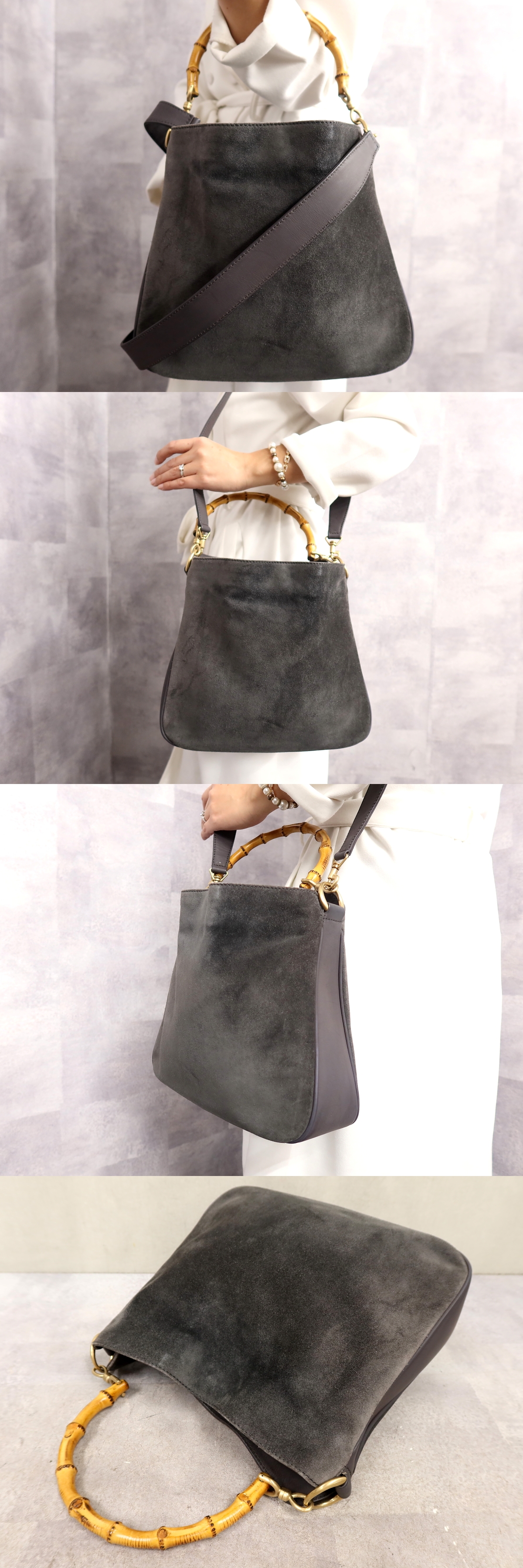 Store ●超美品●GUCCI グッチ●バンブー●スエード レザー 本革●2way ハンド バッグ●グレー●ゴールド金具●イタリア製●収納 かばん●Js63642
