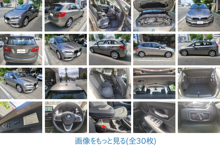 BMW 2シリーズアクティブツアラーは、快適性と安全性を兼ね備えたコンパクト・ハッチバックです。平成28年モデルで、走行距離はわずか30000km、修復歴なしの良好な状態です。本革シートや衝突被害軽減ブレーキ、横滑り防止装置などが装備され、安全なドライブをサポート。電動リアゲートも付いており、荷物の出し入れが楽になります。保証付きで安心してお乗りいただける一台です。