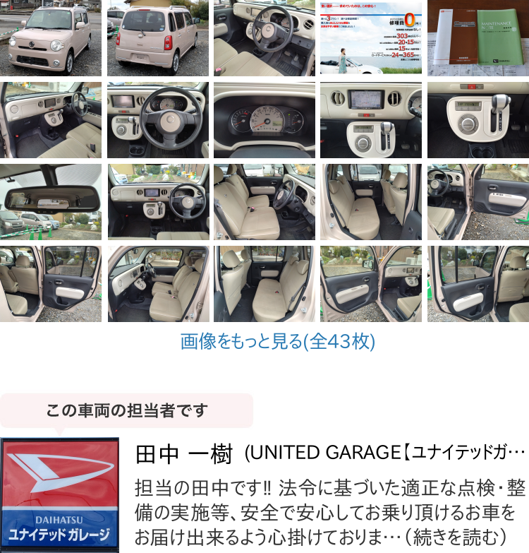 Store 【諸費用コミ】:愛知県 おすすめ中古車 ダイハツ ミラココア スマートキー ナビ TV バックカメラ 車検2年付 整備記録簿