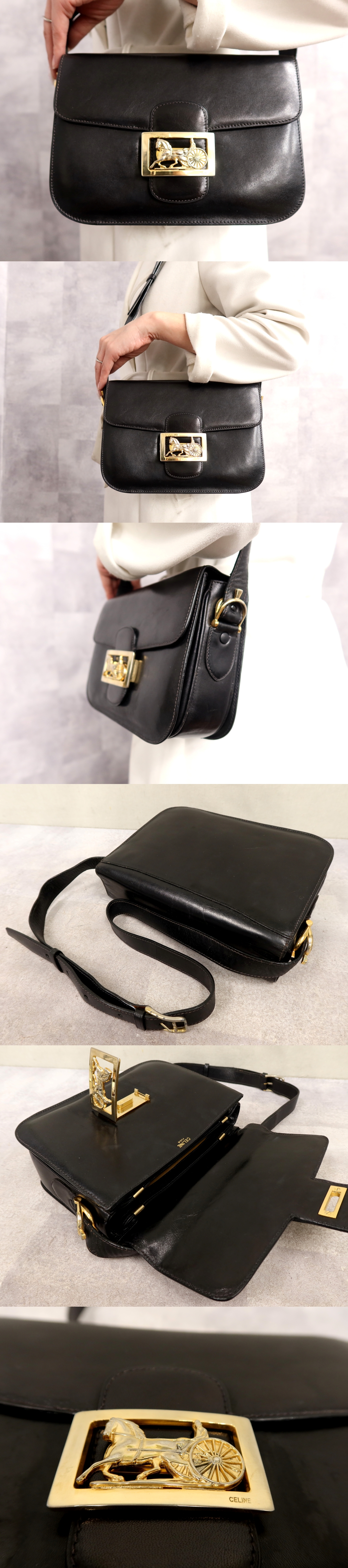Product name: ●美品●CELINE セリーヌ●馬車金具●カーフ レザー 本革●ショルダー バッグ●黒●ゴールド金具●ヴィンテージ●肩掛け●かばん●Js66041