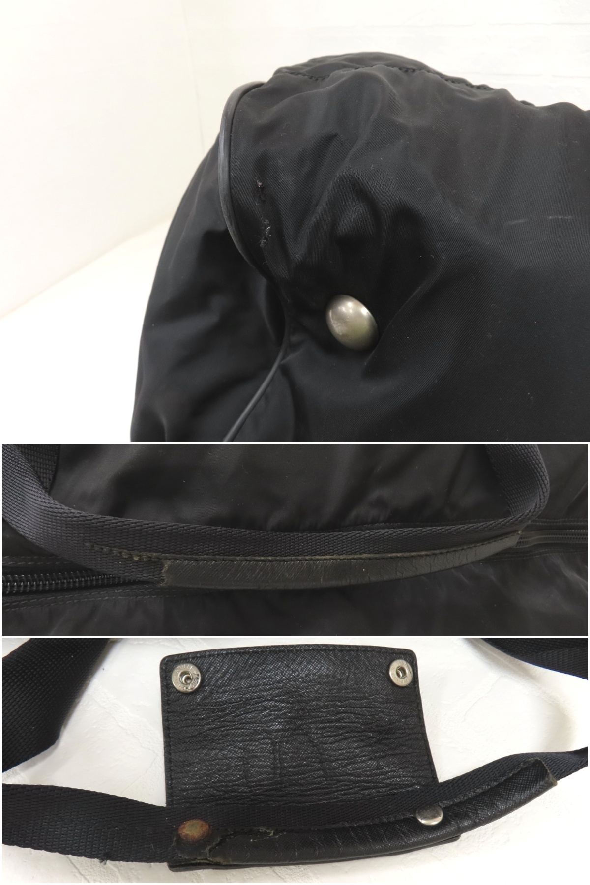 若干のすれ、若干のキズ、若干のよごれ、ハンドルに傷み、底中材に割れと変形がございます。白タグは取れてしまっています。