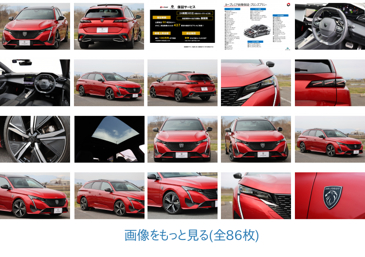車両状態コメント現行モデルの308SW。斬新なフォルムに斬新なボディカラーのエリクサー・レッドがよく映えます。目立つような傷はなく、塗装状態も良好です。内装も旧型から一気によくなり、チープな印象は皆無です。特にPeugeot i-Cockpitと呼ばれるメーターからナビ回りにかけては格段に進化し、旧型とは別の車といっていい程です。