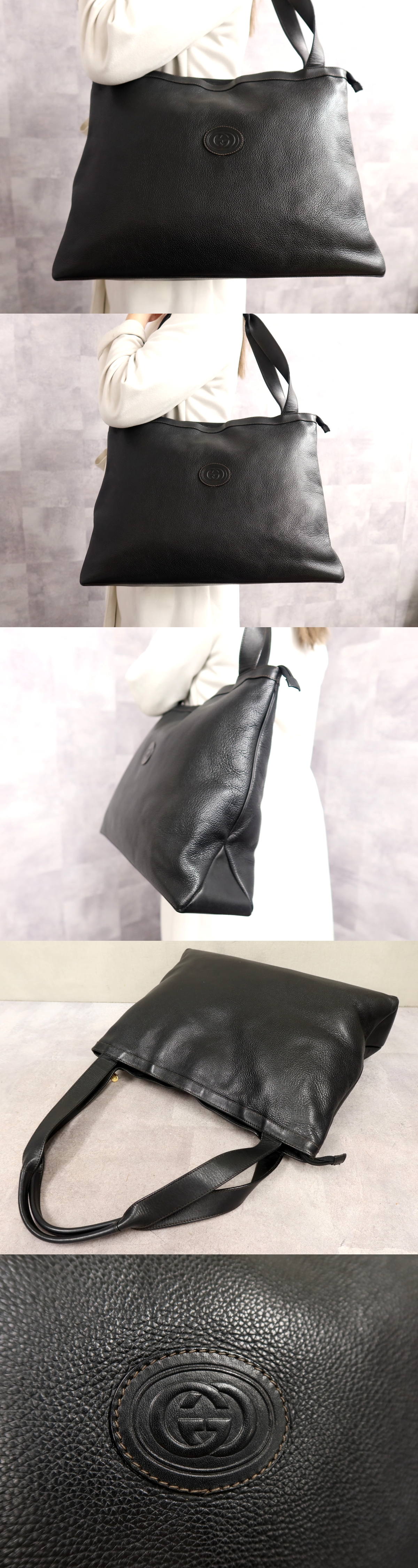 Store ●超美品●GUCCI オールド グッチ●カーフ レザー 本革●トート バッグ●黒●ゴールド金具●肩掛け●イタリア製●A4 収納 かばん●Js66388