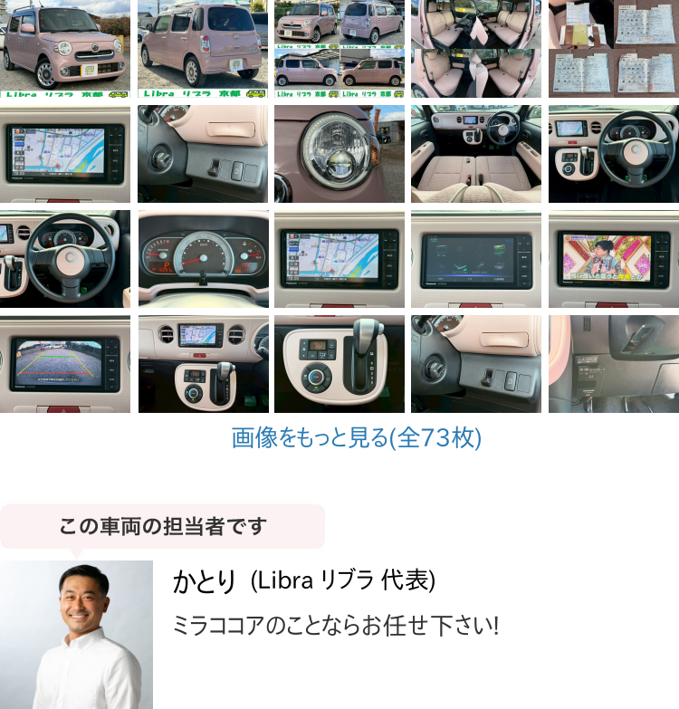 Product name: 鑑定書付:ナビ/フルセグTV/Bluetooth/バックカメラ/スマートキー/LEDヘッド/ETC/記録簿6枚/29年式/ミラココア プラスX