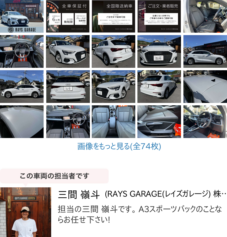 Store 【諸費用コミ】:★総額193.8万円★A3スポーツバック 30 TFSI 検R8年10月 パークアシスト厳選中古車 大阪府東大阪市