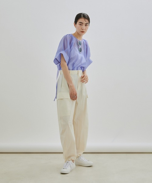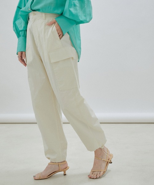 キーワード:カーゴパンツ レディース ハイウエスト フルレングス ワイドパンツ 無地