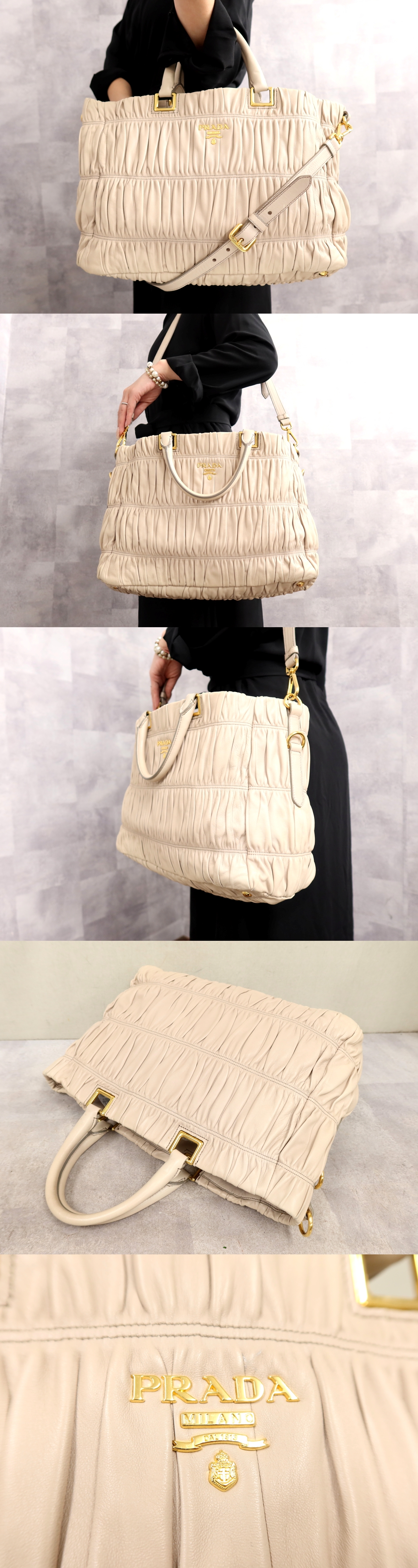 Product name: 美品●PRADA プラダ●ロゴ金具●ギャザー●ナッパ レザー 本革●2way トート バッグ●ベージュ系●ゴールド金具●イタリア製●A4●Js66769