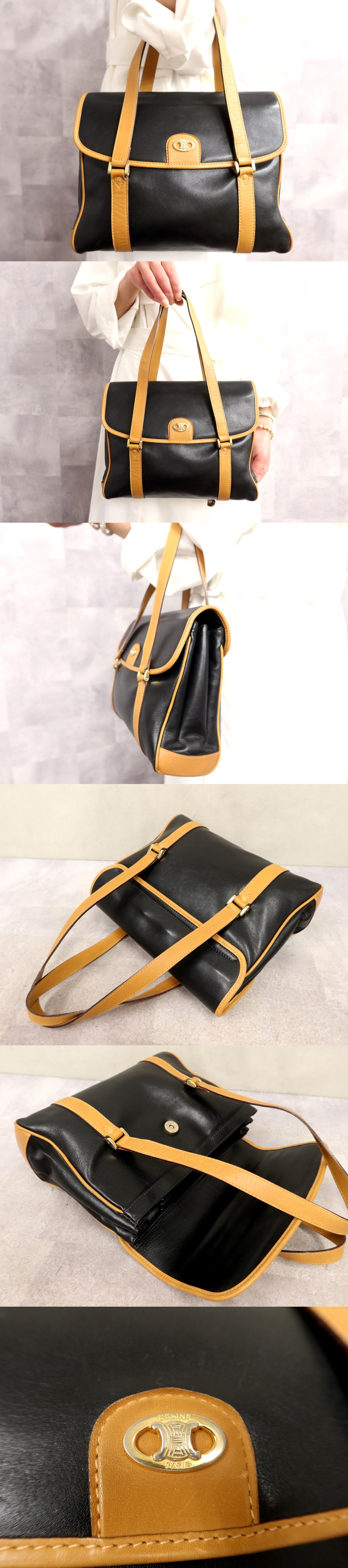 Product name: ●超美品●CELINE セリーヌ●フラップ●カーフ レザー 本革●ショルダー ハンド バッグ●黒 キャメル●ゴールド金具●収納 かばん●Js66681