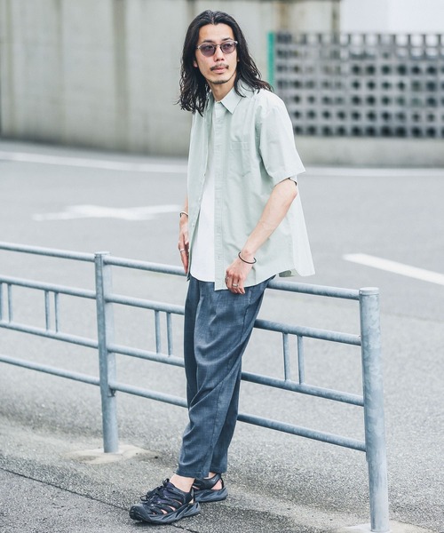 キーワード:シャツ メンズ リネン 麻 レギュラーカラー ロング丈 半袖 無地 夏 春