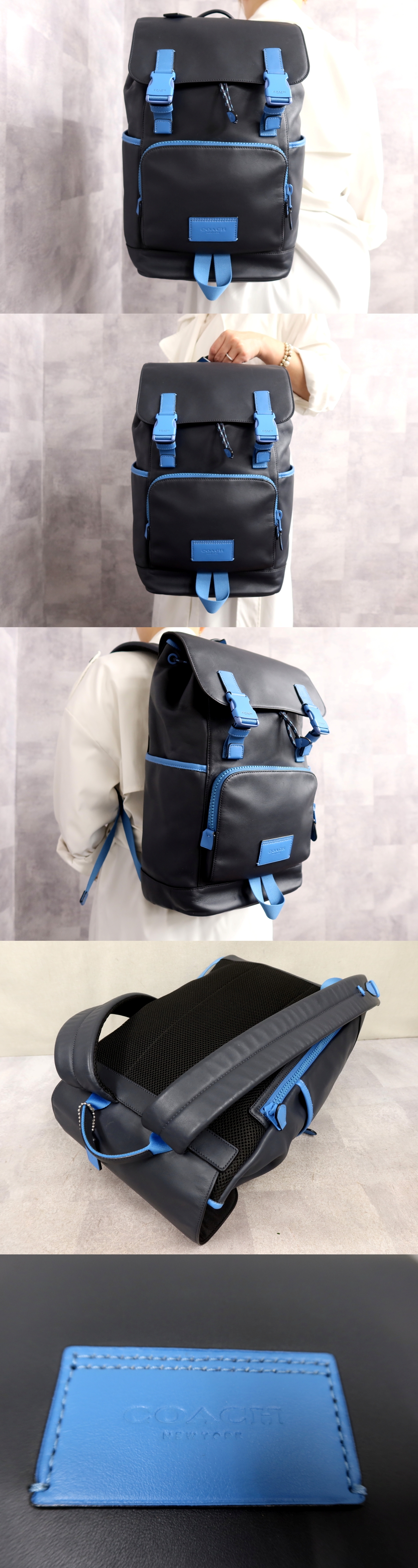 Product name: 超美品●COACH コーチ●メンズ●トラック バックパック●C5302●カーフ レザー 本革●リュックサック●ネイビー ブルー●A4 収納●Js67185