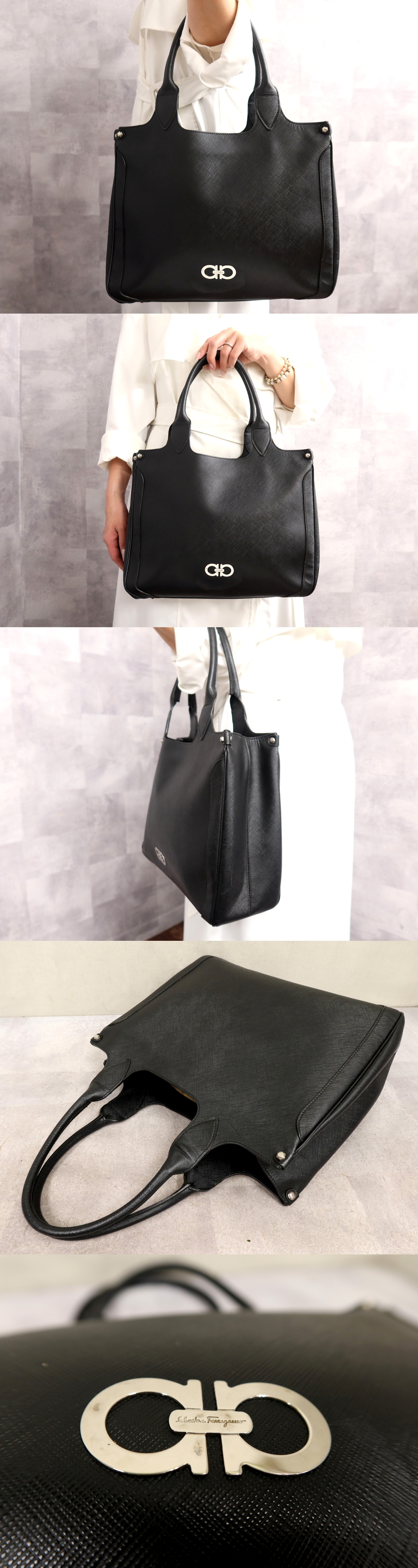 Product name: ●超美品●Salvatore Ferragamo フェラガモ●ダブルガンチーニ●サフィアーノ レザー 本革●トート バッグ●黒●シルバー金具●A4●Js67191