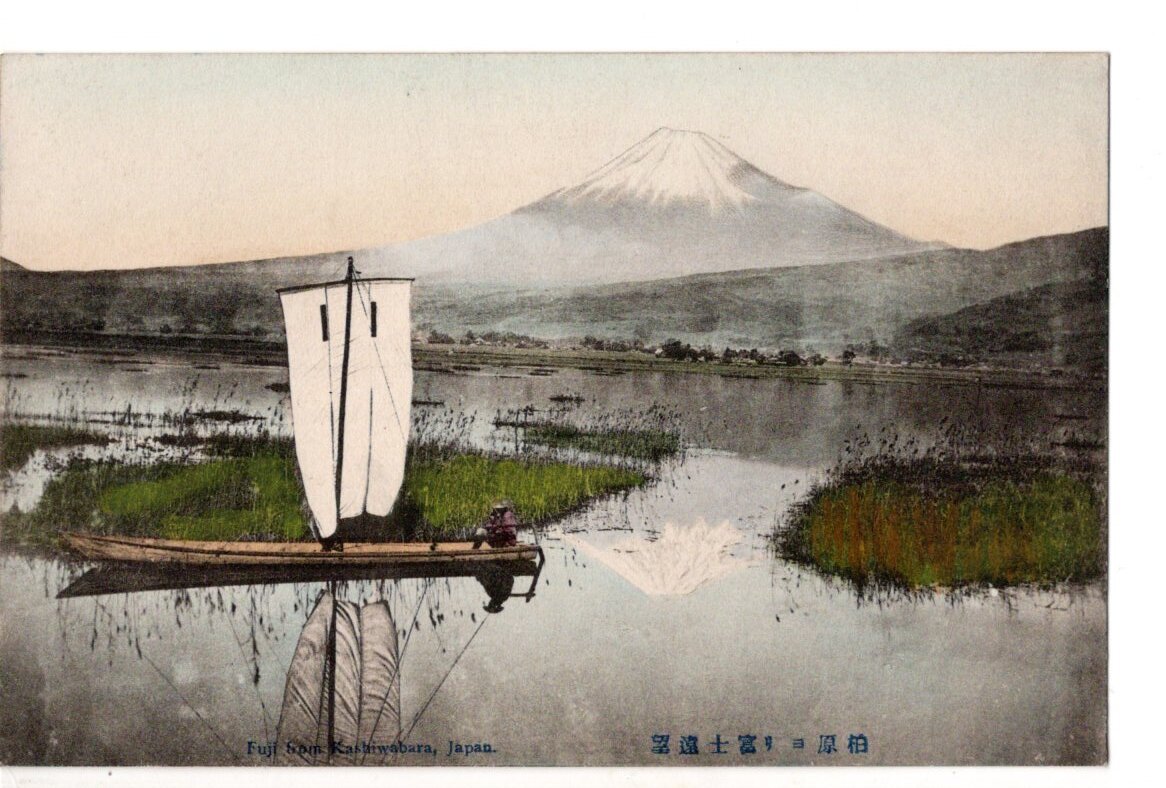 Product name: 手彩色 富士山 静岡 柏原より富士遠望 船 葦