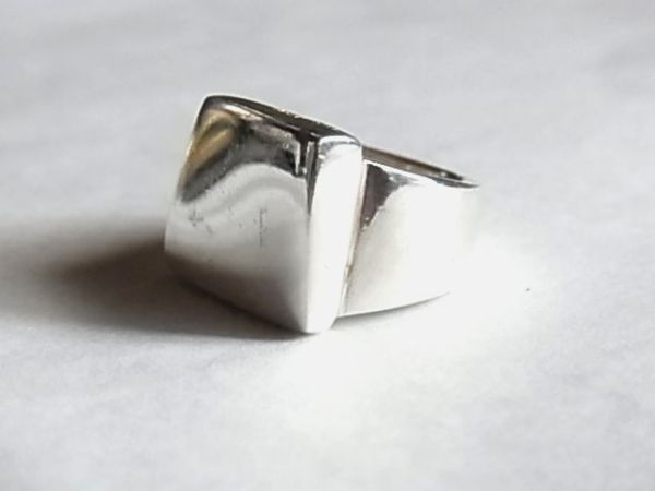 ユーズド品です。フェラガモ (Ferragamo)のリング(指輪)です。サイズは約8号~約10号です。素材はシルバー925(silver 925)です。イタリア製です。1枚目の写真では模様があるように見えますが映り込みであって実際には模様はありません。男性(メンズ)の方ならピンキーリングに良いと思います。ユーズド品なのでユーズド品にご理解のある方のみオークションに参加して下さい。キズやくすみや変色等あります。付属品はありません。