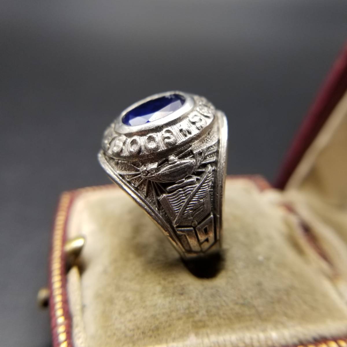 Product name: 1977年 Bale社製 米国 ヴィンテージ クラスリング Goose Rock School カレッジシグネット 925 シルバー 銀 指輪 青石 Y13-H