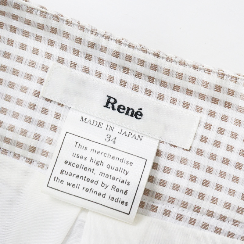 ルネ Rene チェック タックフレアスカート 34/ホワイト ベージュ ボトムス ひざ丈【2400014020052】
