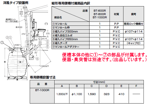 Product name: LIXIL・INAX(リクシル・イナックス) 簡易水洗便器用便槽 縦形 950リットル BT-1000R