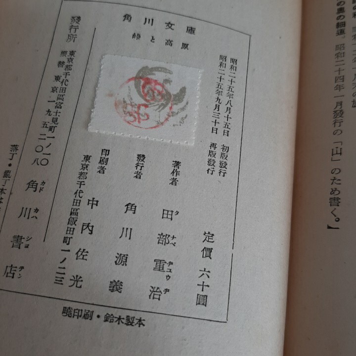 Product name: G1☆峠と高原☆田部重治☆角川文庫☆