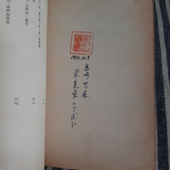 目次の前のページに、蔵書印と書き込みがあります。