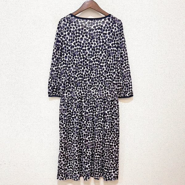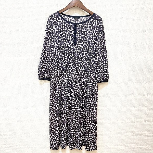 #anc アクアスキュータム Aquascutum ワンピース 10 白 濃紺 総柄 ドット サイドジップ 七分袖 レディース [842823]