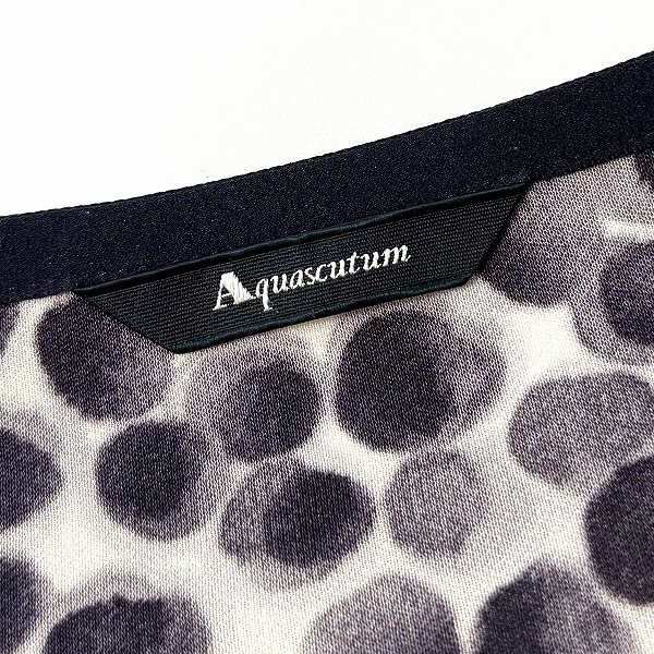 Product name: #anc アクアスキュータム Aquascutum ワンピース 10 白 濃紺 総柄 ドット サイドジップ 七分袖 レディース [842823]