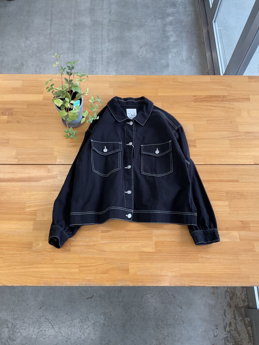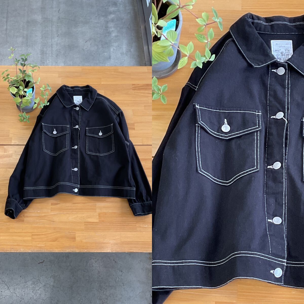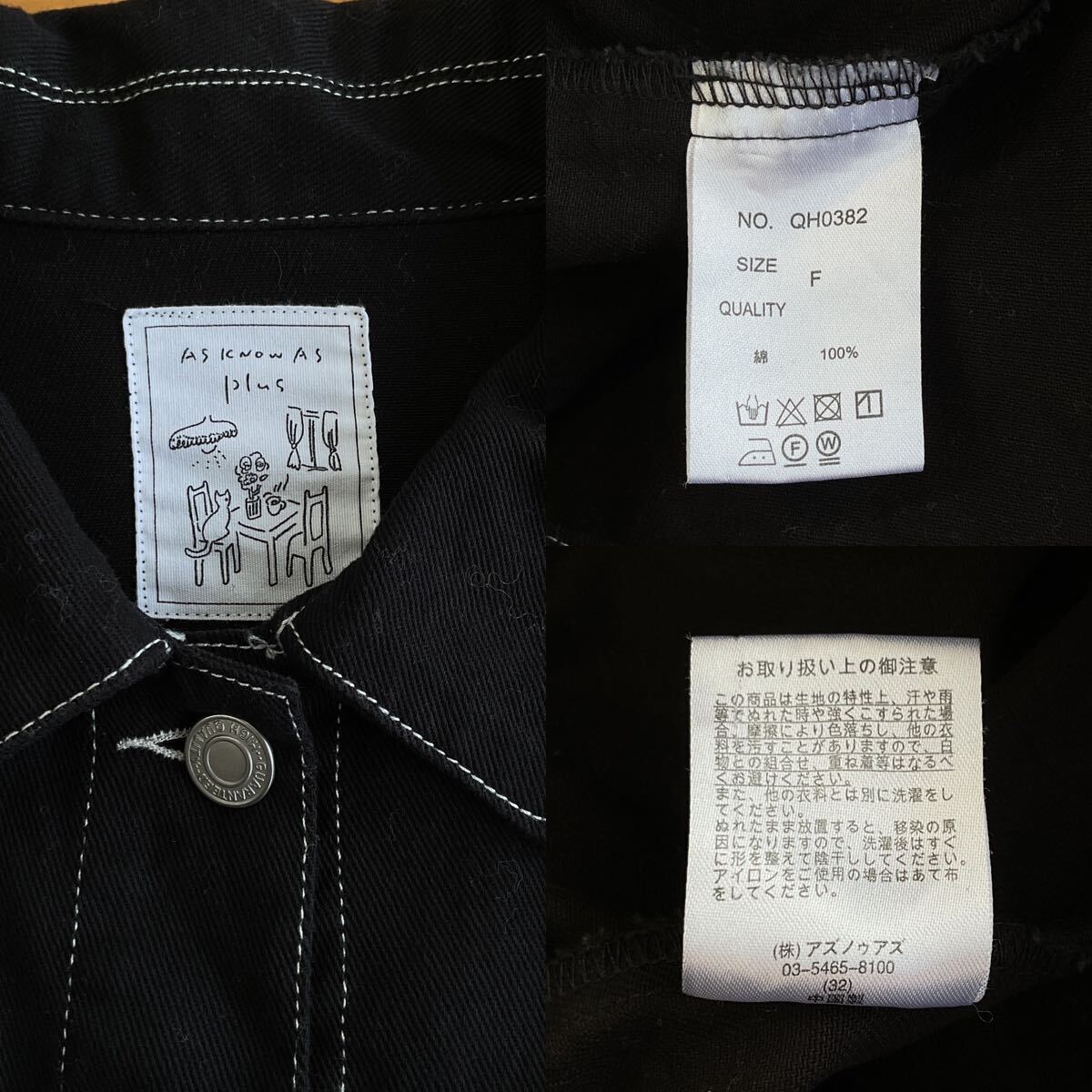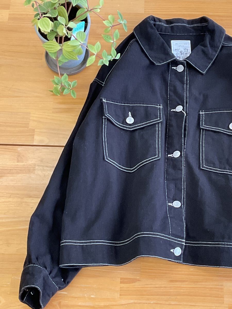 Product name: 美品 AS KNOW AS アズノゥアズ ステッチデニムワイドショートジャケット ストレッチ素材ジーンズライトアウター ブラック黒色系 フリー
